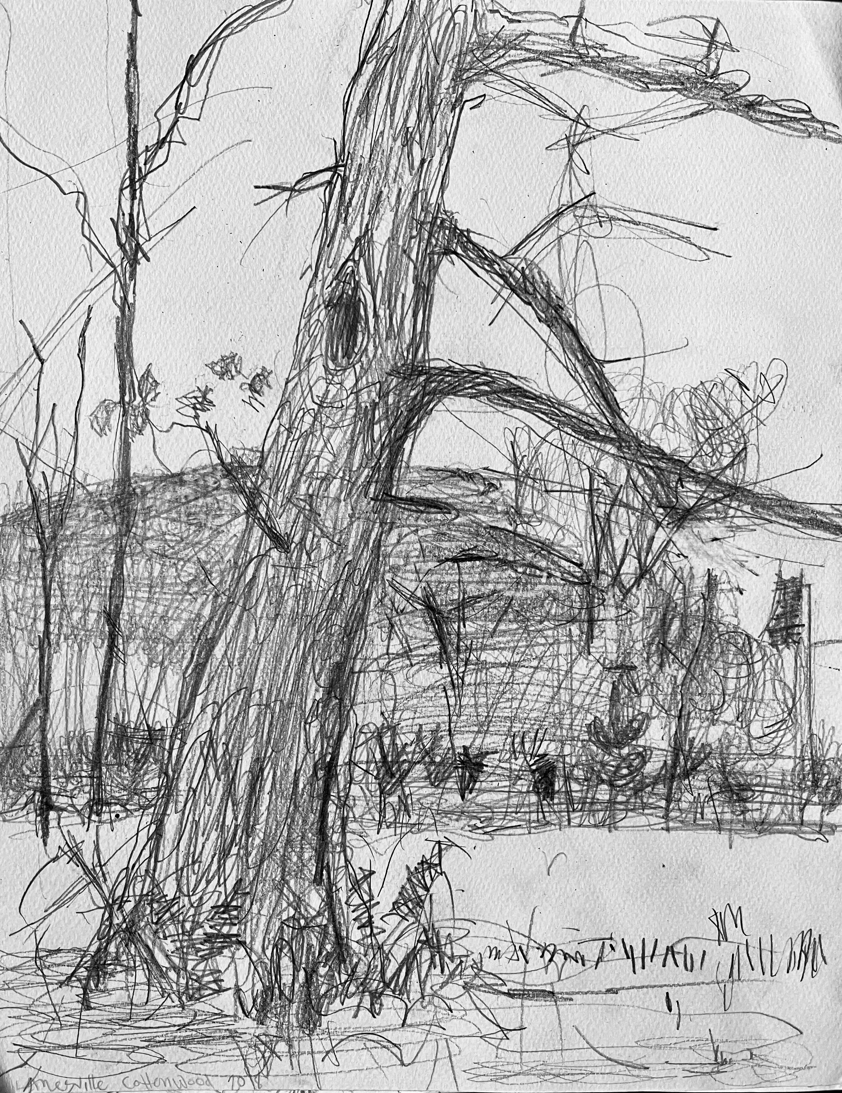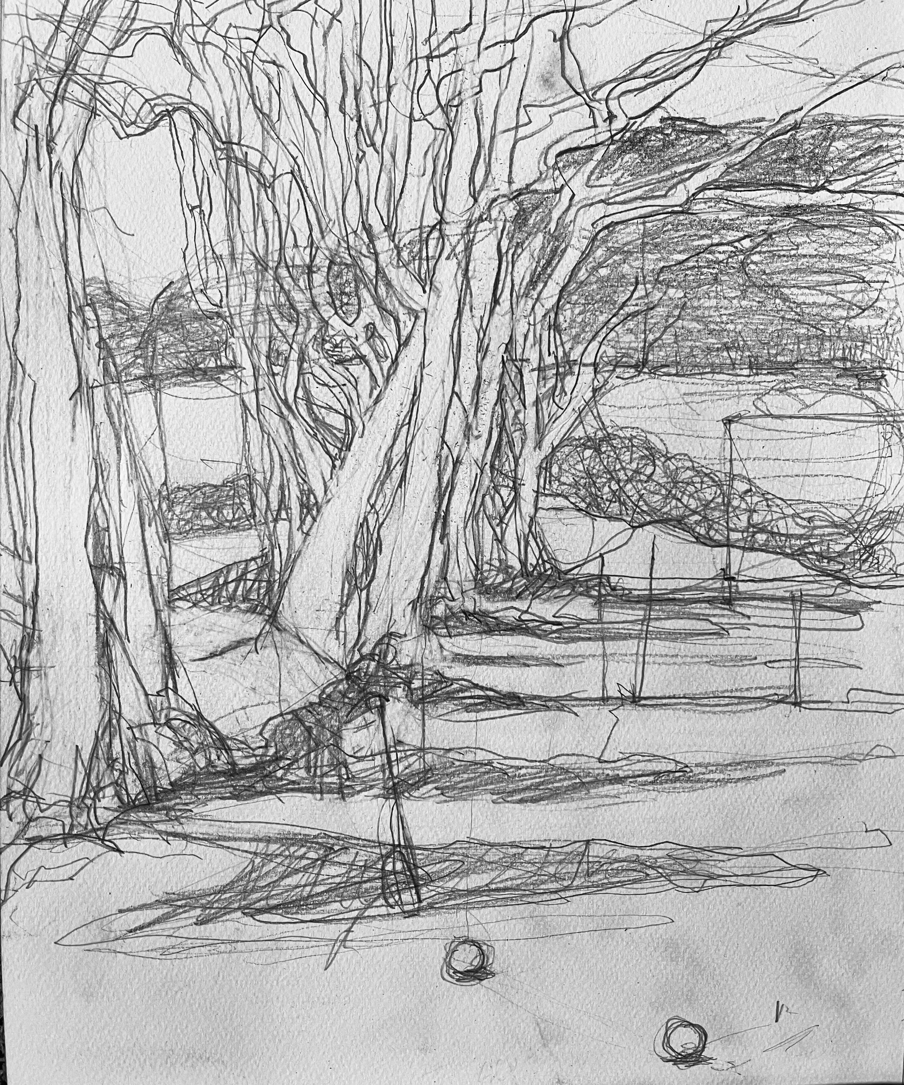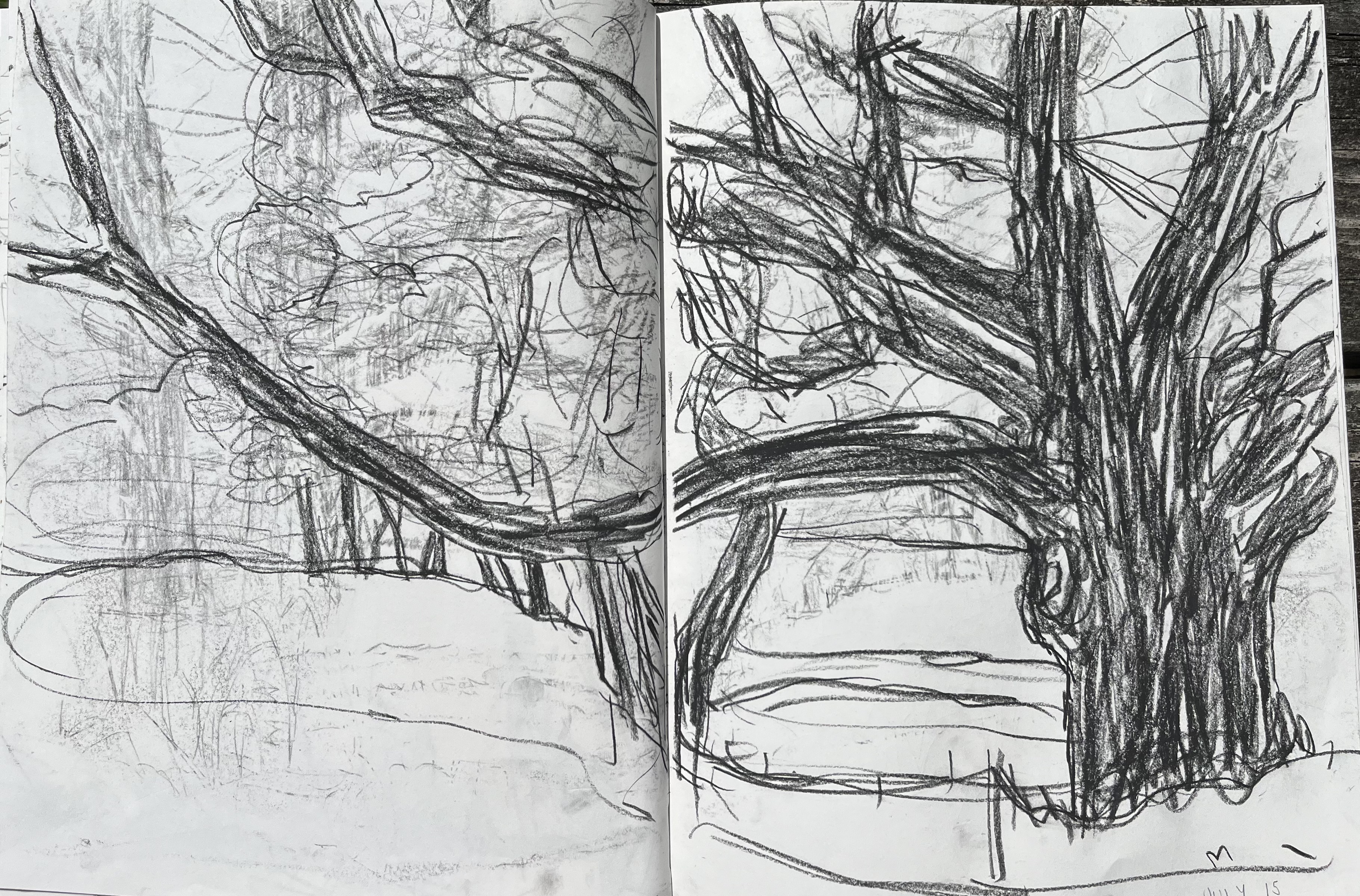 TREES 2017, 5"sq, graphite on Saunders paper,