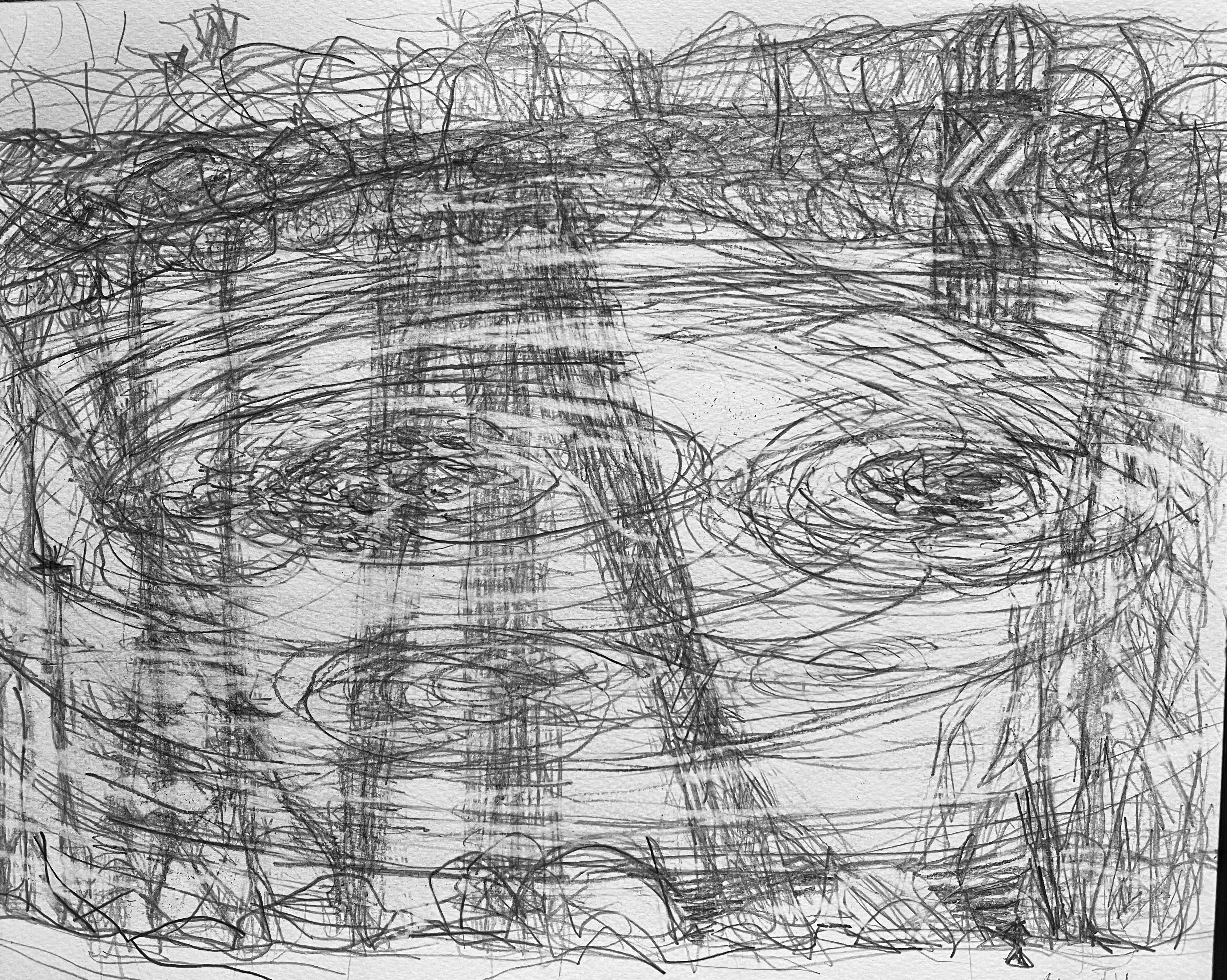 SQUATTERS 2017-18, 5"sq, graphite on Saunders paper